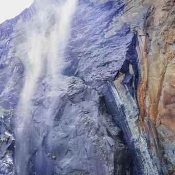 在神瀑处体验雨水的洗礼,按照藏族的传统顺时针绕瀑布走三圈祈福。